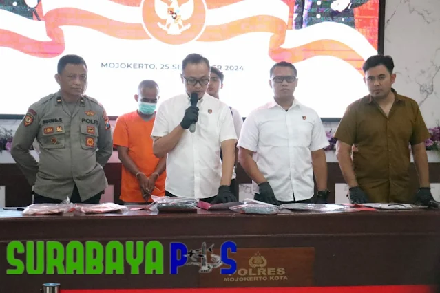 Kasatreskrim Polres Mojokerto Kota,AKP Rudy Zaeny dalam Konferensi Pers mengatakan korban merupakan Anak sambung (14) dari pelaku AYN (34).